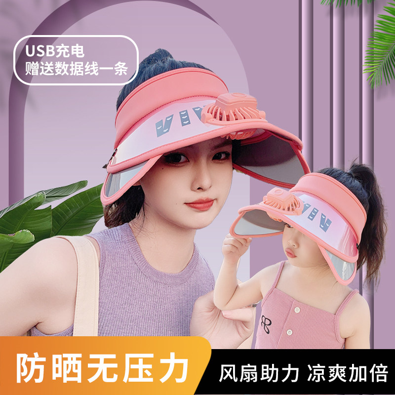 儿童空顶帽女夏季亲子风扇帽防紫外线防晒遮阳帽大檐宝宝太阳帽