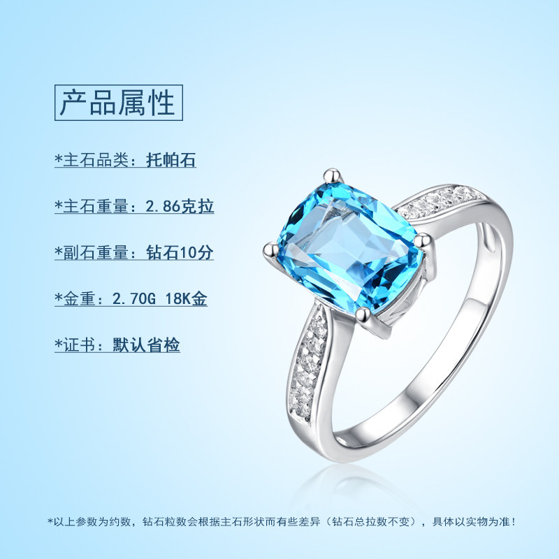 蜜安琪 2.86克拉托帕石戒指 天然18K金镶嵌宝石 彩色宝石钻石戒指
