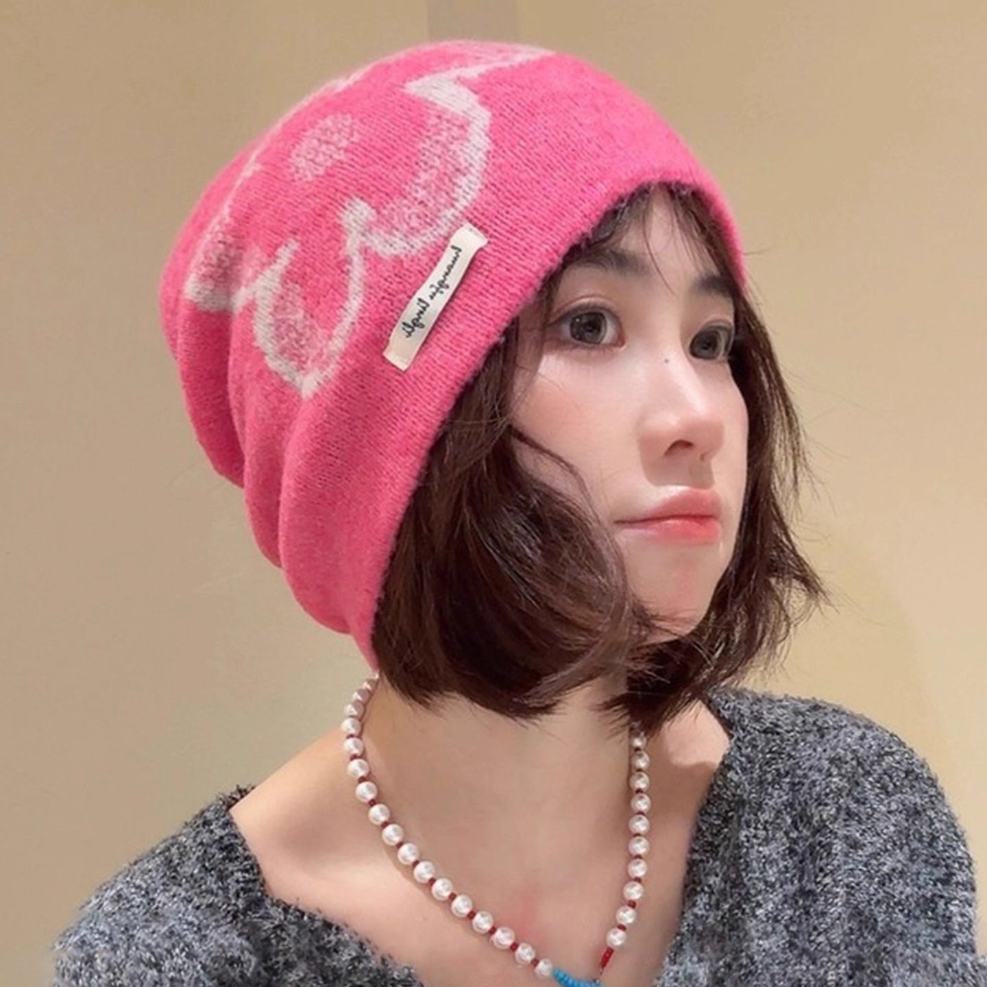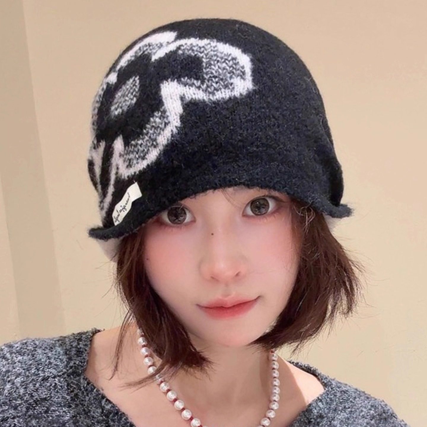 2025新款韩版复古提花针织帽子女秋冬季百搭保暖护耳显脸小包头帽