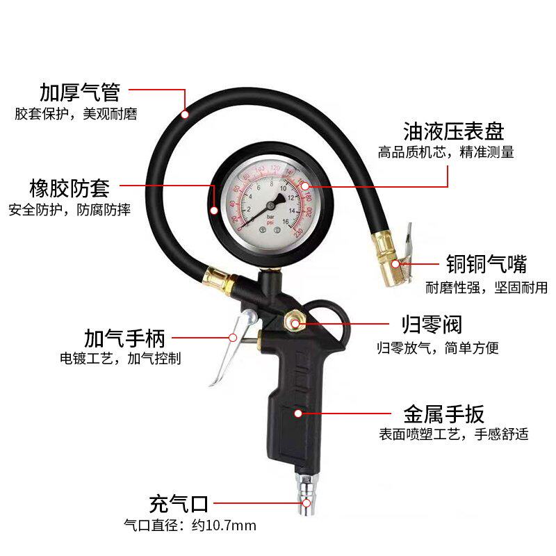 胎压表气压表高精度汽车轮胎压监测器数显胎压枪放加气打气充气枪