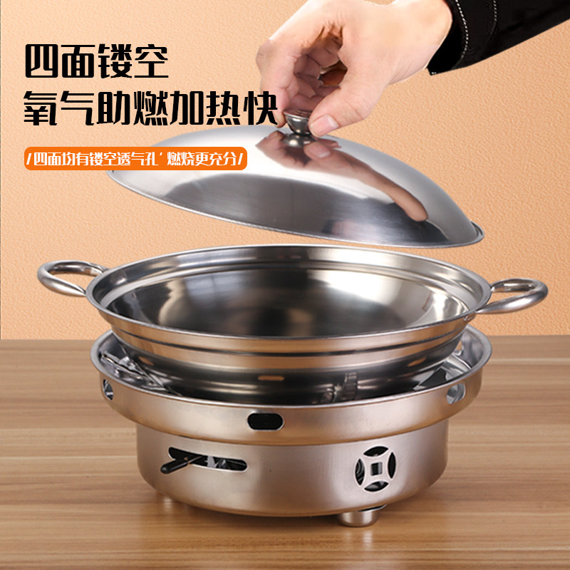 不锈钢干锅锅具酒精炉子小火锅盆锅仔锅家用商用饭店专用防风便携