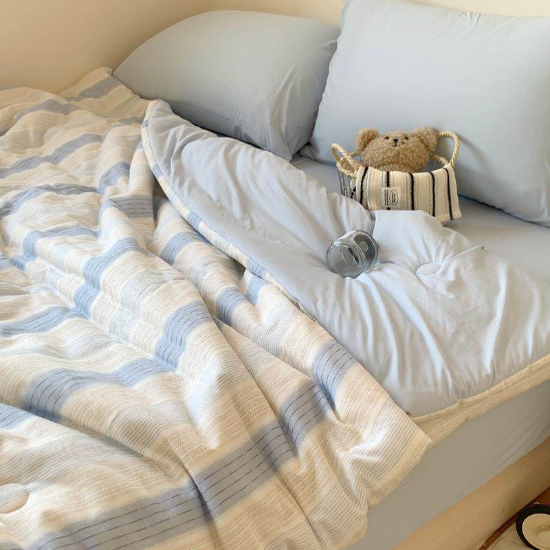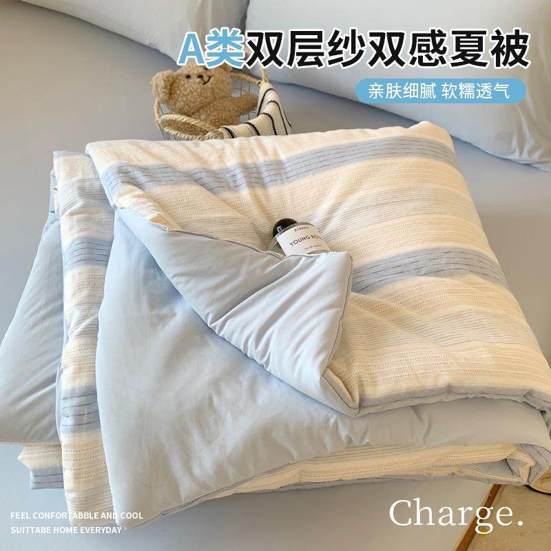 夏季A类全棉双层纱夏凉被四件套小冰皮凉感纯棉被套简约床品床笠