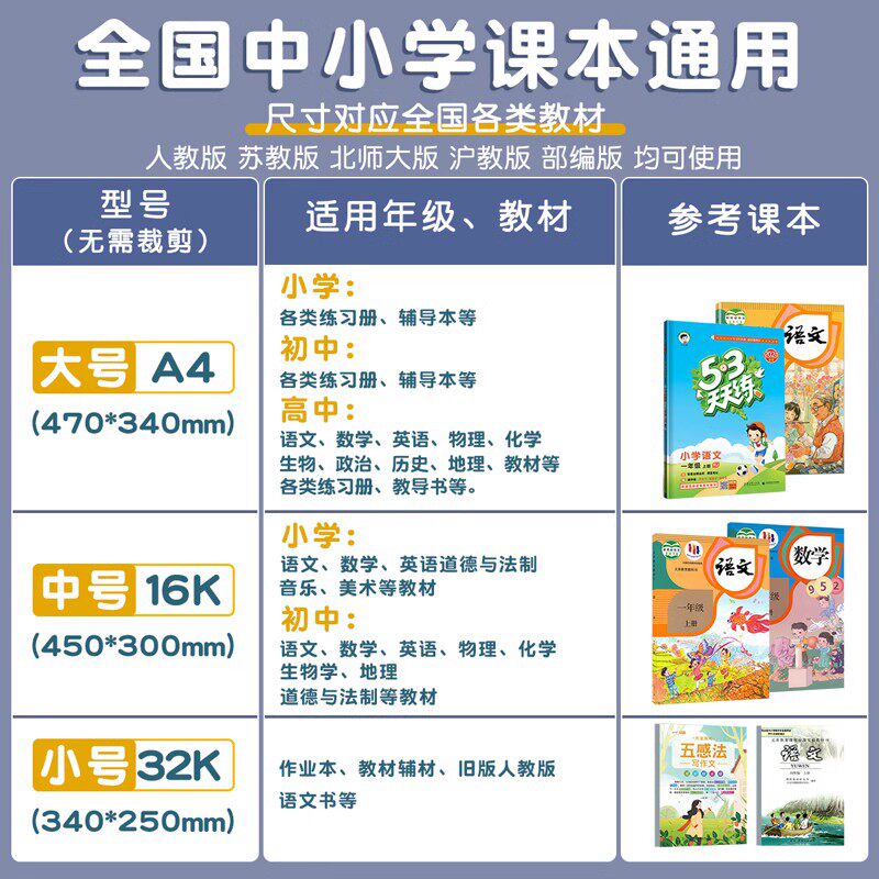 包书皮书套透明书本保护套小学生一二年级书衣16K包书纸三年级四五年级下册全套课本a4书壳初中生专用自粘书
