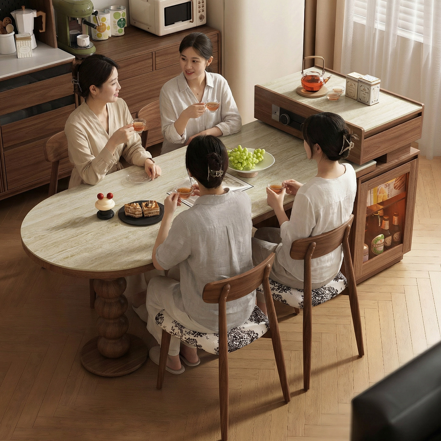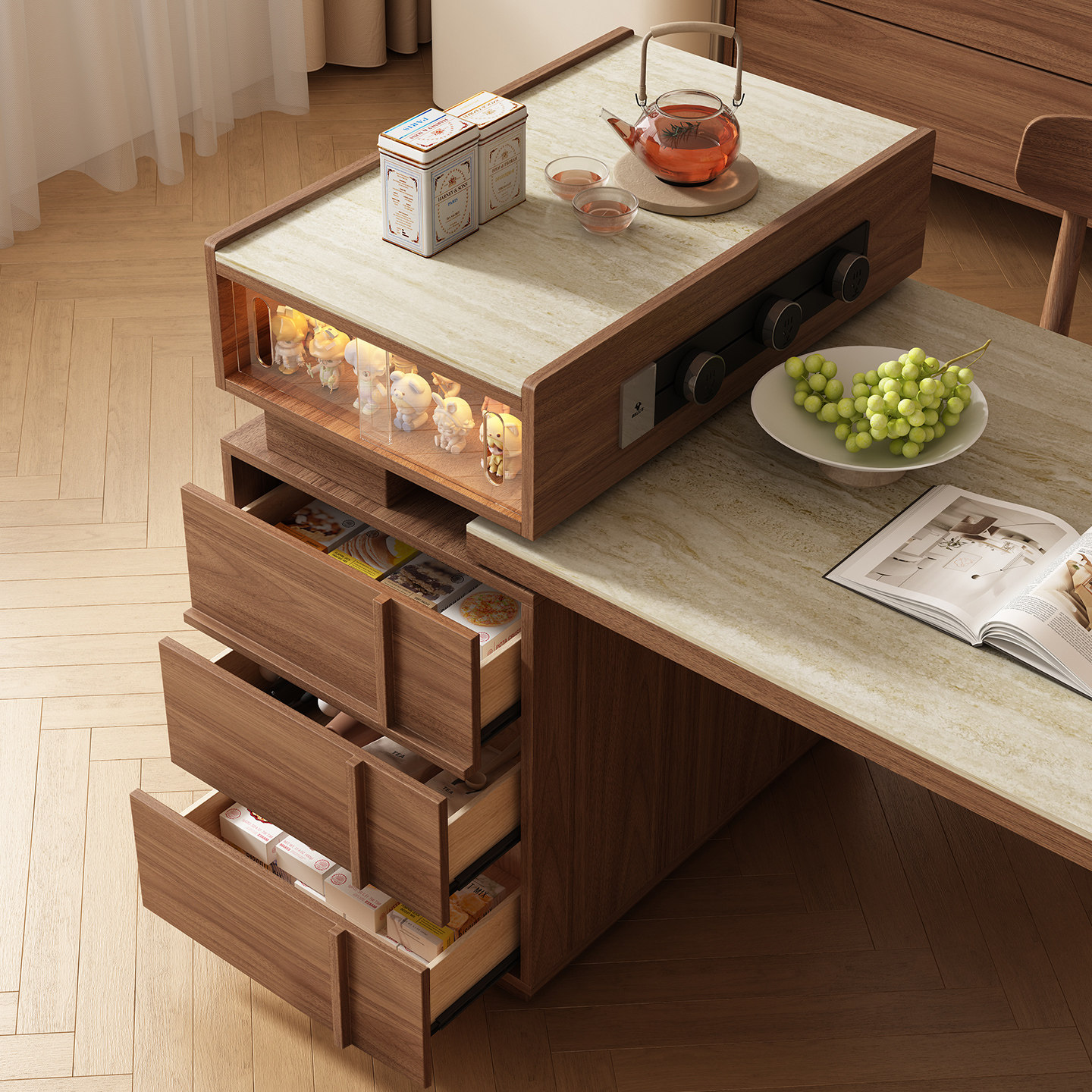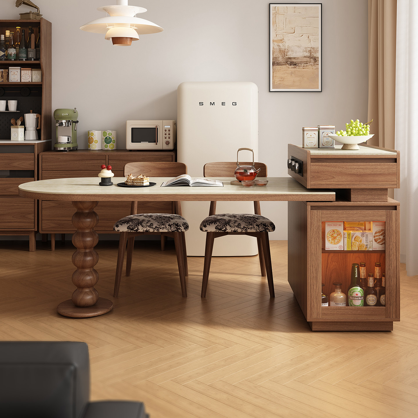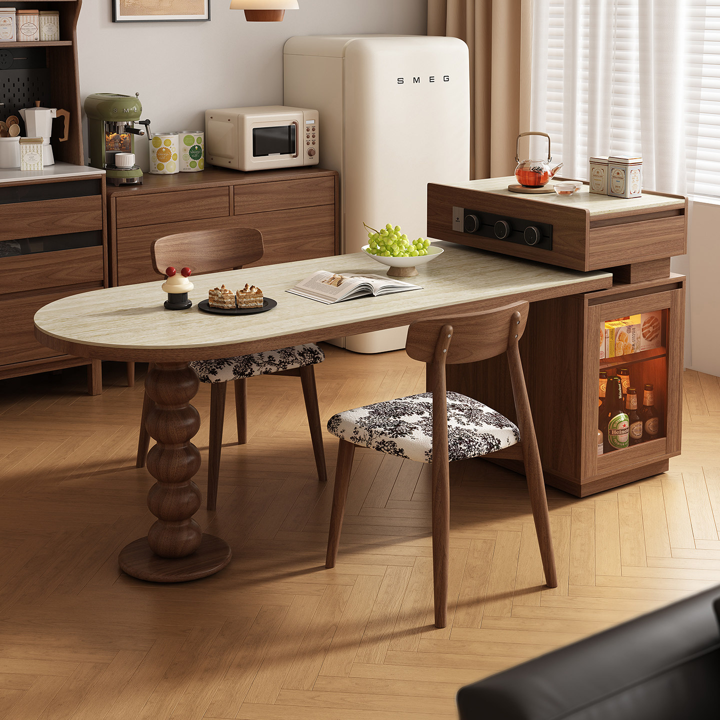 中古风复古岛台餐桌一体家用可伸缩小户型岩板极窄餐边柜客厅吧台