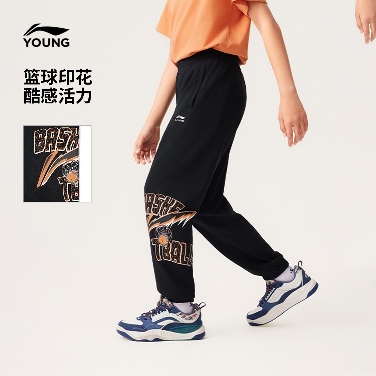 李宁儿童休闲运动长裤2025新款秋冬款男童装女中大童秋季裤子秋装