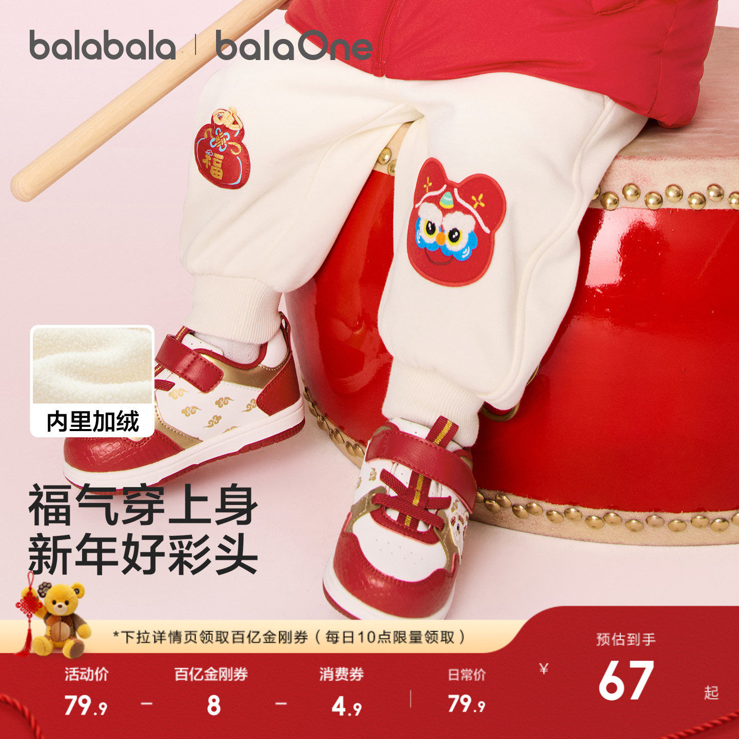 巴拉巴拉童装儿童加绒长裤子男童2026冬装新款红色拜年服女童宝宝