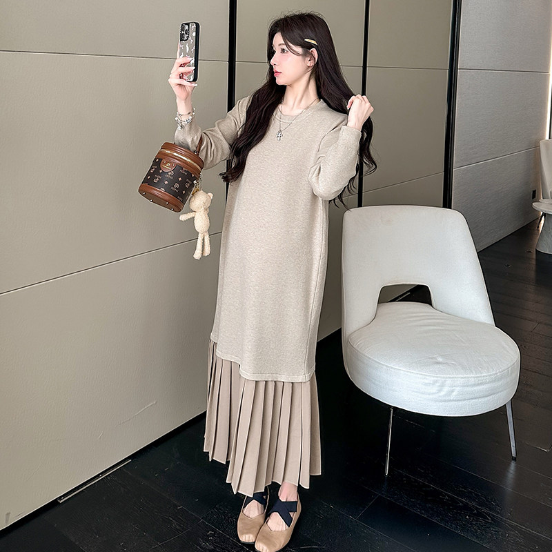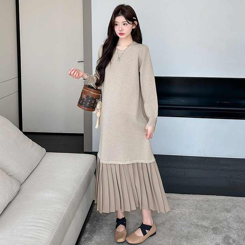 婧麒高级孕妇装打底长裙冬装孕期新款哺乳孕妇裙子针织孕妇连衣裙