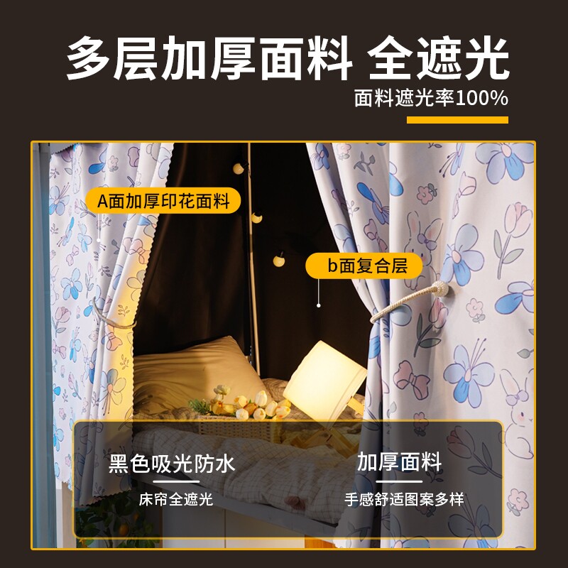 强遮光加厚床帘宿舍大学生上下铺帘子围帘窗帘下桌遮挡布全包上铺