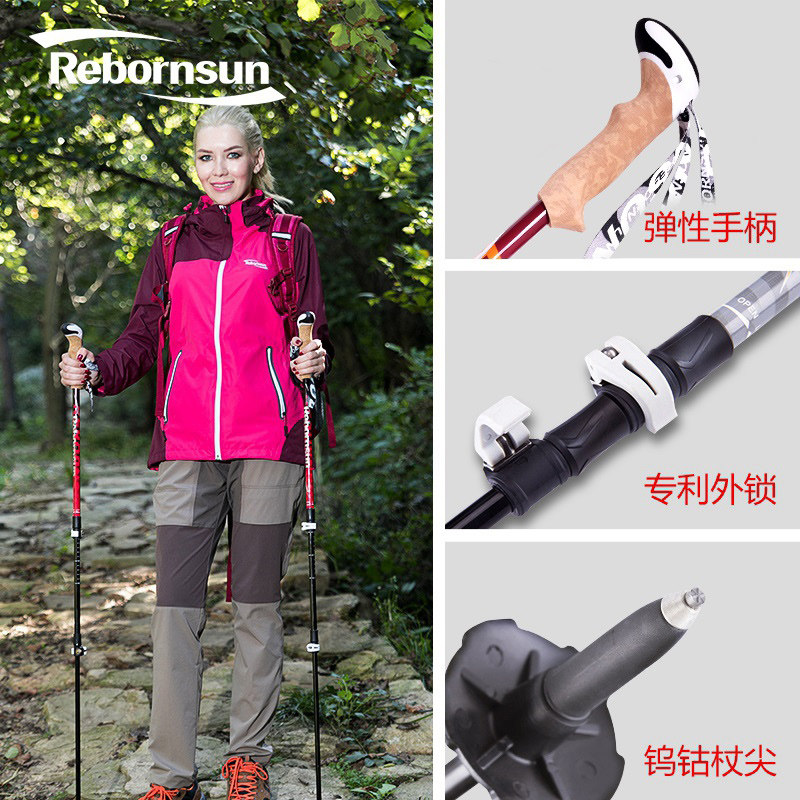 鲁滨逊夜峰登山杖外锁碳素伸缩手杖碳纤维折叠杖专业户外徒步装备