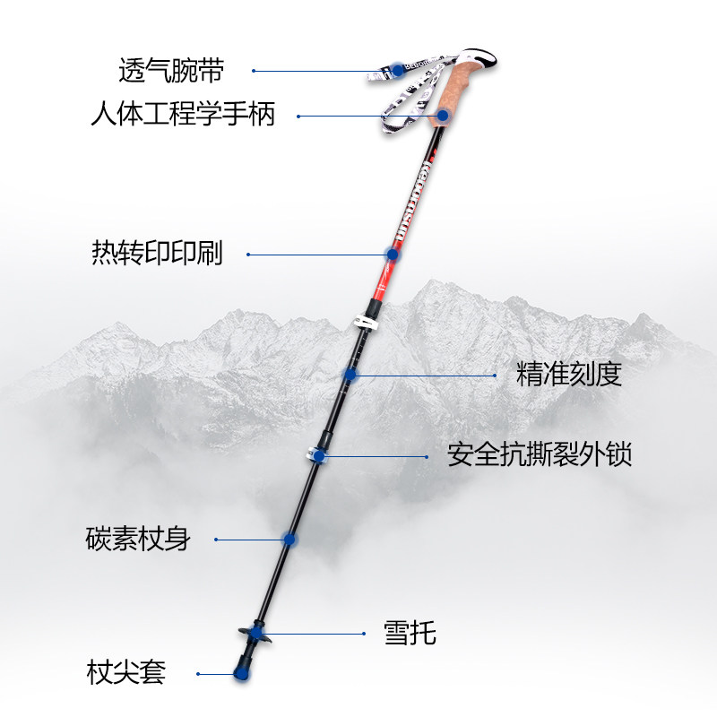户外登山杖手杖碳素超轻伸缩折叠滑雪防滑拐杖多功能爬山徒步装备