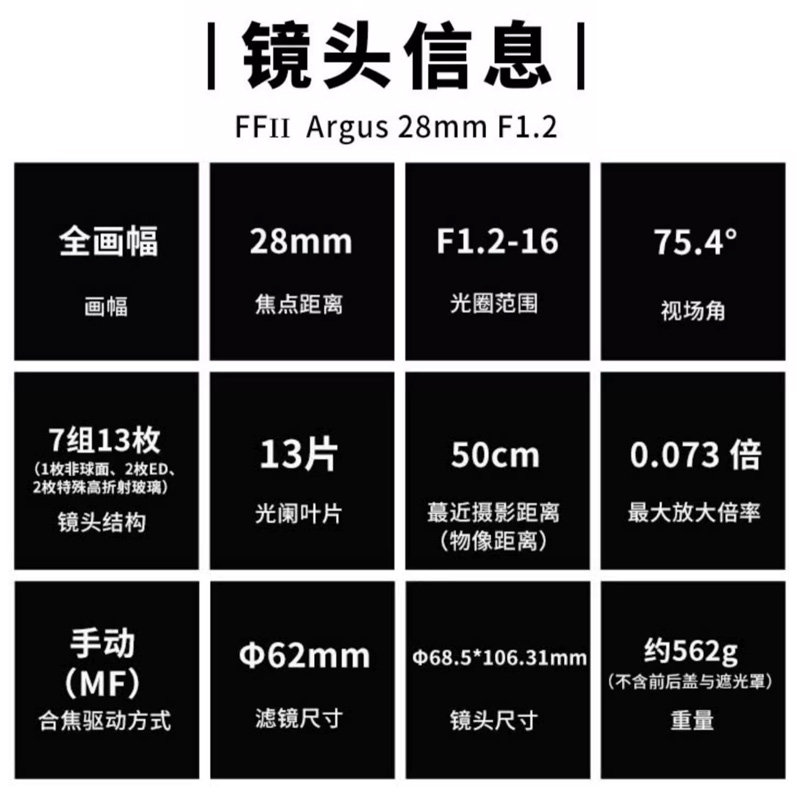 老蛙28mm F1.2 大光圈人像定焦镜头适用索尼E佳能R尼康Z马徕松L口