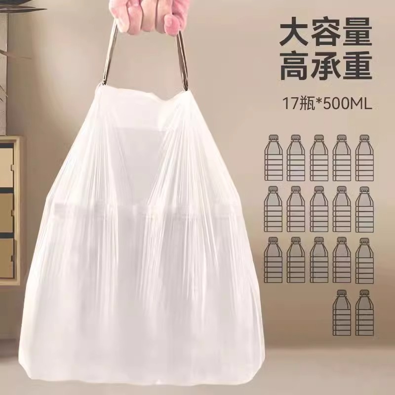 e洁垃圾袋背心式可绑可提手提式一次性家用点断塑料袋100只实惠装