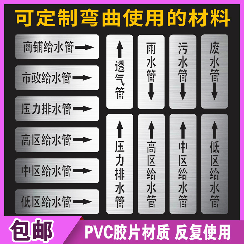 管道标识镂空喷字模板消防管道空心字标识喷淋管道镂空喷漆模板管道标识流向箭头漏字雕刻定制