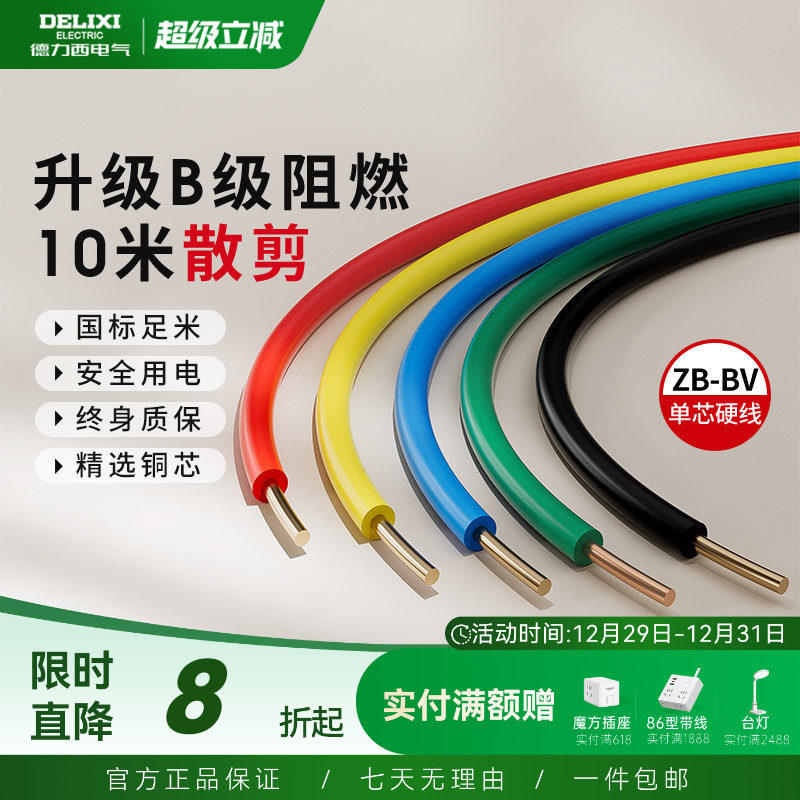 德力西电线阻燃bv单芯硬线家用家装电缆国标2.5 4 6平方铜芯铜线