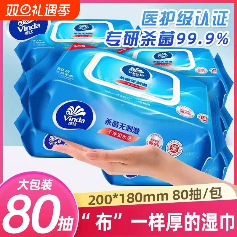 维达杀菌湿巾大包80/240片温和无刺激去菌无酒精湿纸巾家用