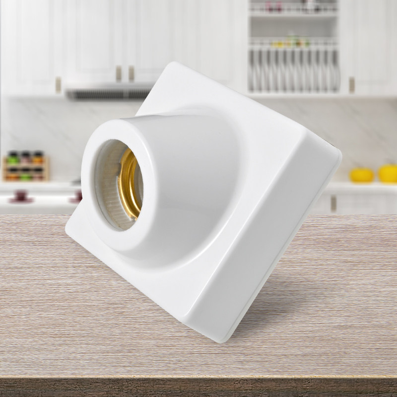家用45度明装暗装斜口方形E27螺口楼梯楼道灯泡底座节能灯泡灯座