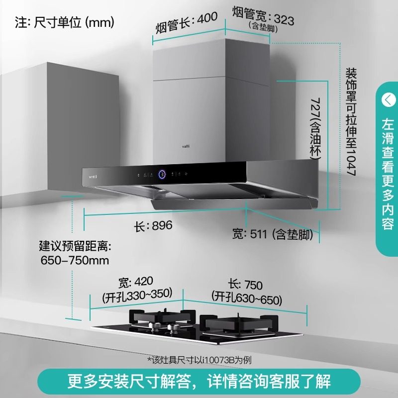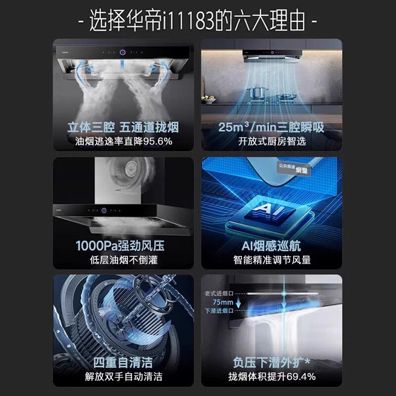 华帝三腔抽油烟机S12变频大吸力顶吸油烟机欧式吸烟机自清洗官方