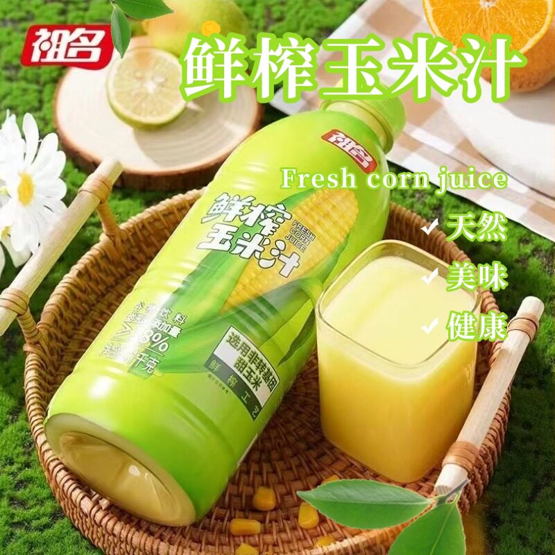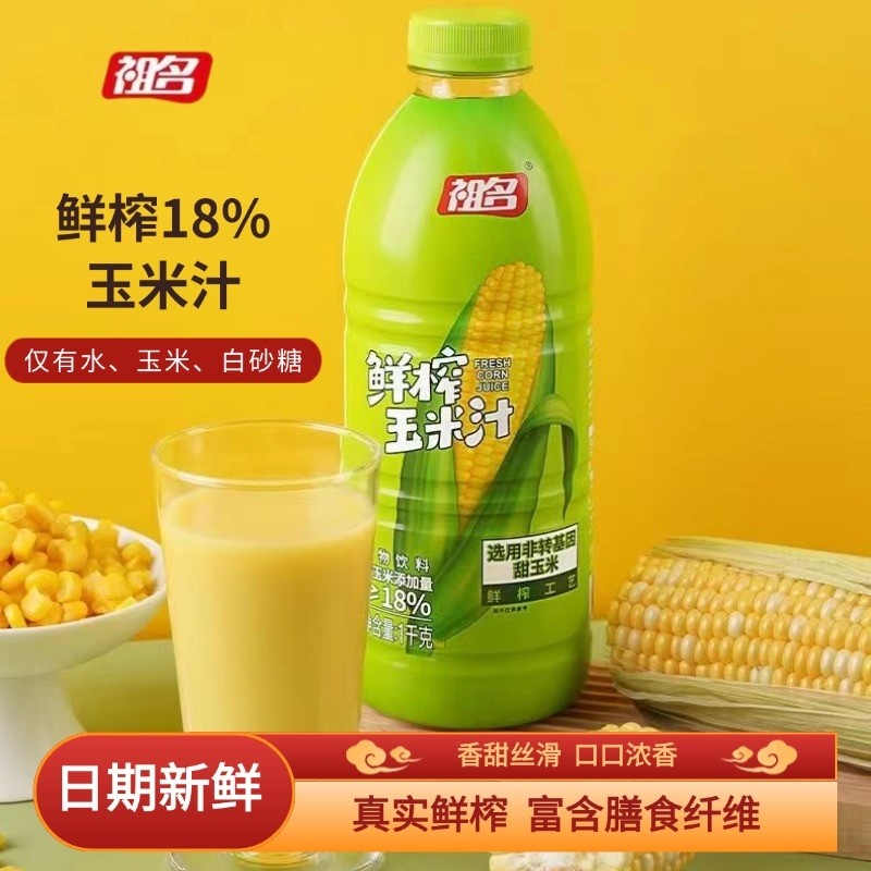 祖名鲜榨玉米汁1L*2瓶现榨果蔬汁粗粮健康早餐冲饮料新鲜冷冻谷物