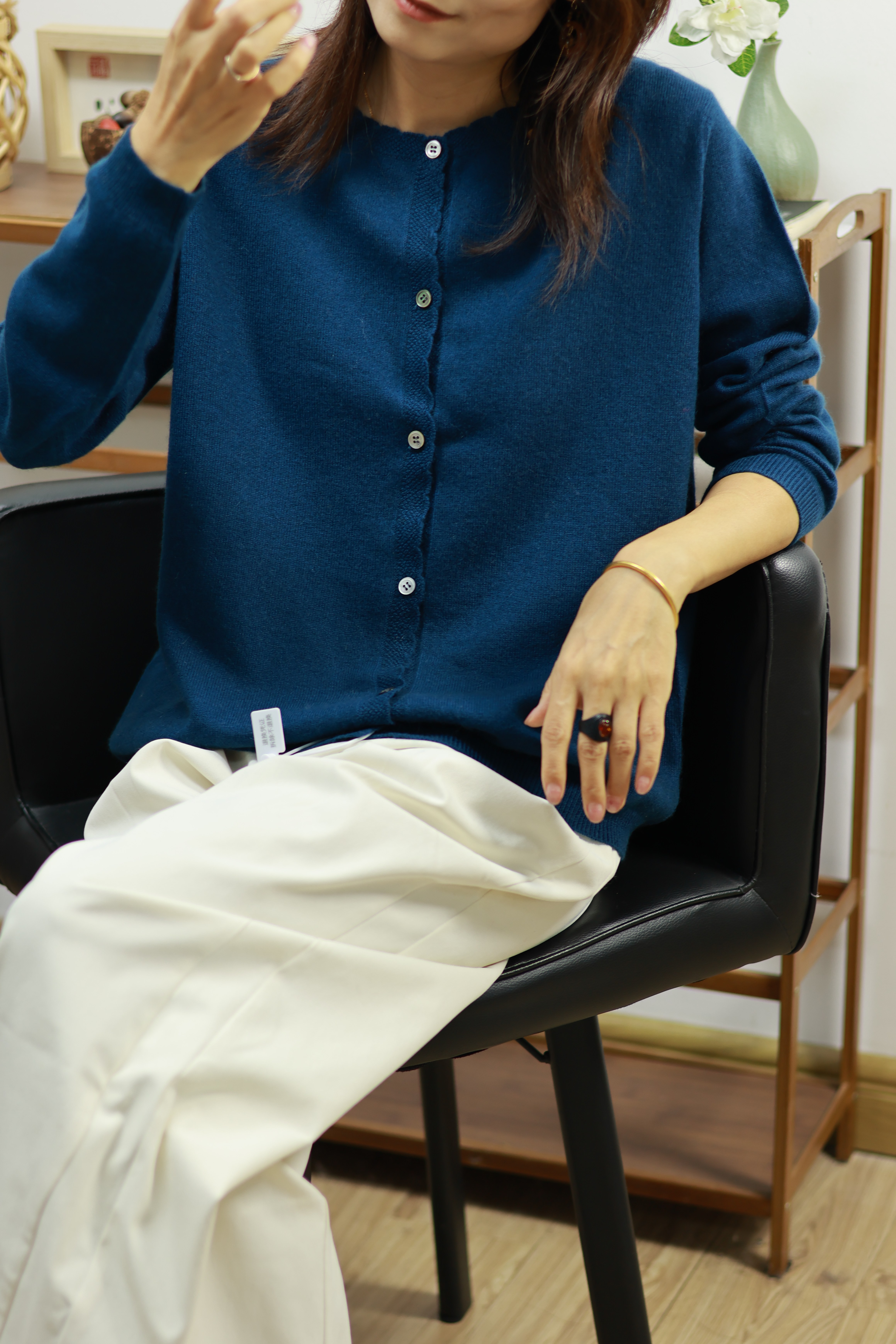【100山羊绒】GOLDEN BARRY25秋气质简洁优雅深V领羊绒开衫243117