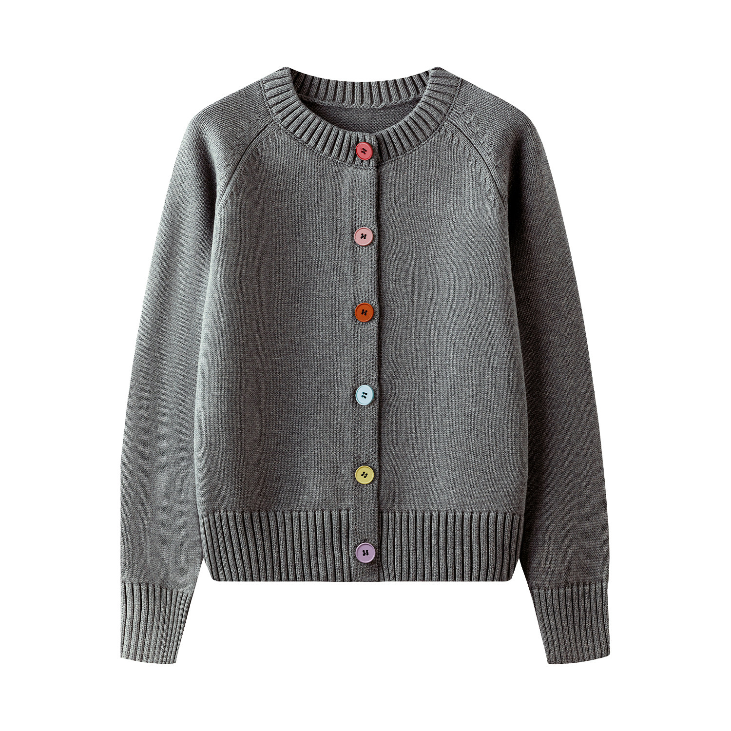 100%纯棉彩色纽扣纯色圆领毛衣开衫线衣厚2025秋冬针织衫外套女士