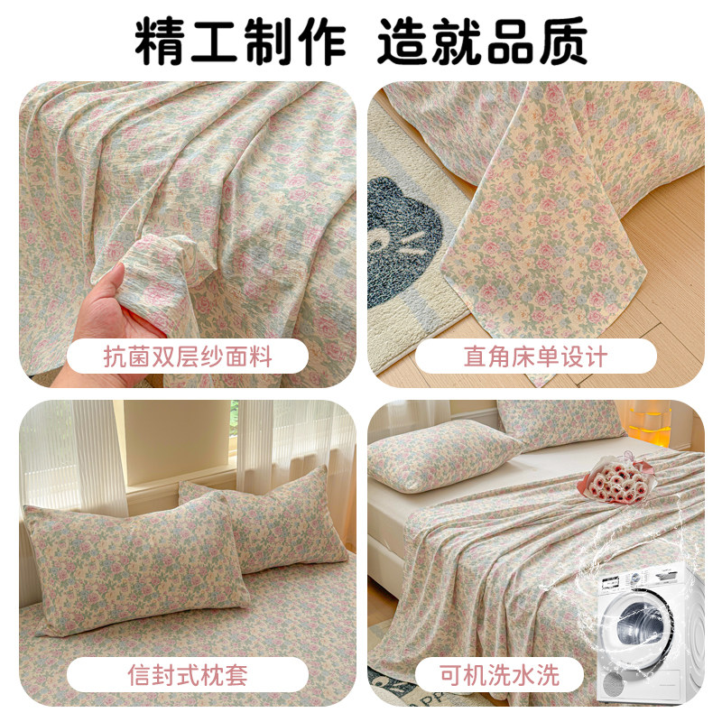 A类全棉双层纱床单单品学生宿舍纯棉被单纯色枕套三件套2025新款4