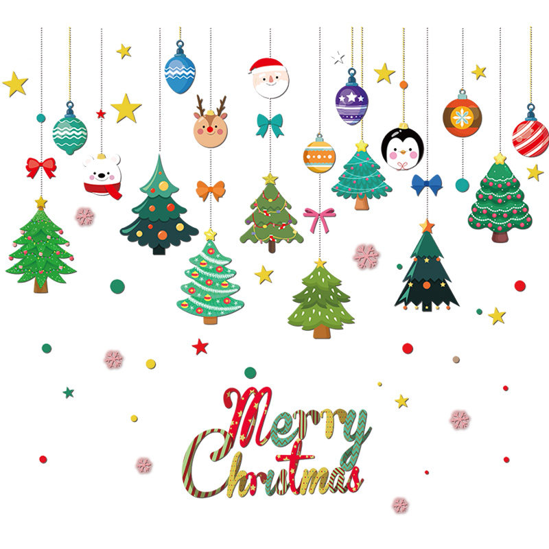 圣诞节装饰贴纸圣诞树静电贴玻璃门气氛场景布置橱窗挂件窗花贴