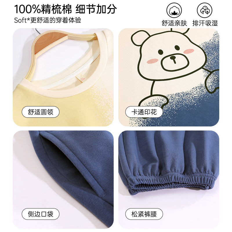 男士睡衣春秋款纯棉长袖青少年学生男孩大童2025年新款家居服套装