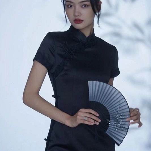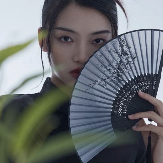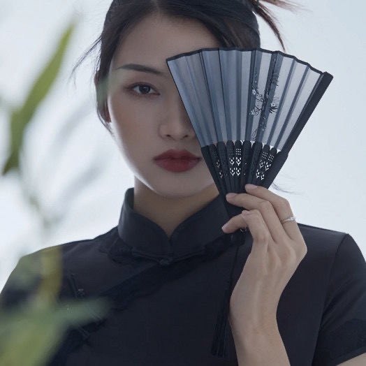 新中式国风复古风潮流旗袍扇子折扇山水扇走秀汉服黑色团扇小扇子