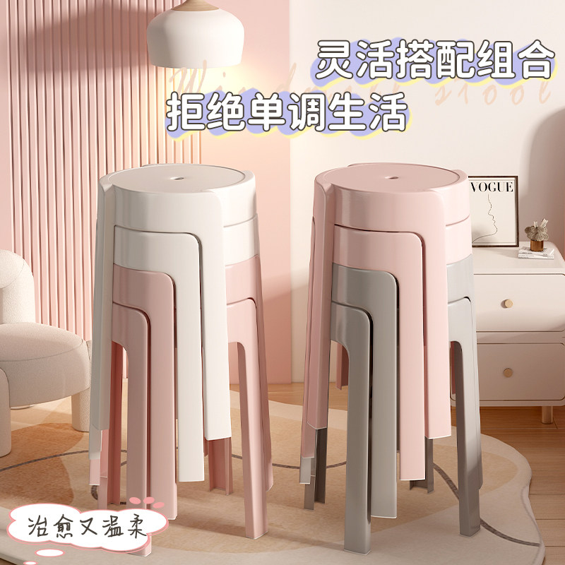 塑料凳子家用软包可叠放加厚结实耐用轻奢高级感圆凳子备用高椅子