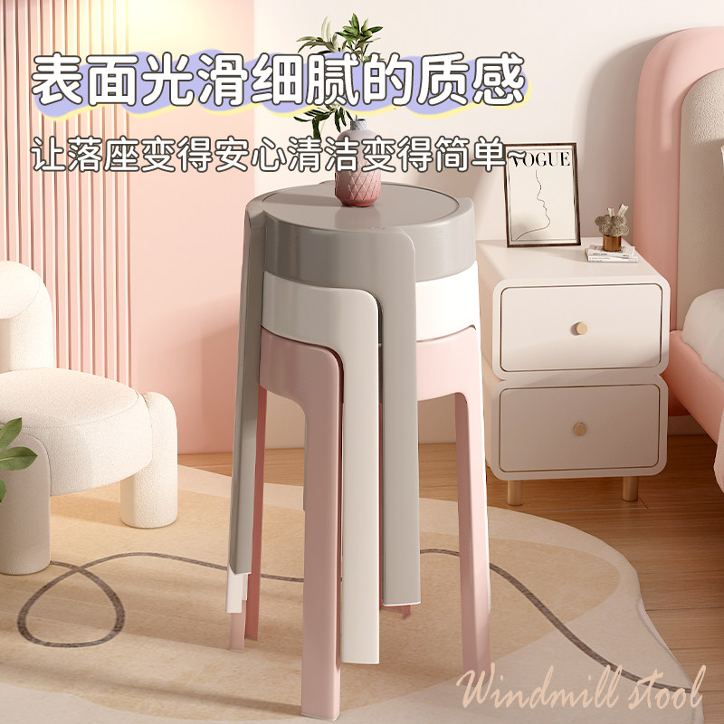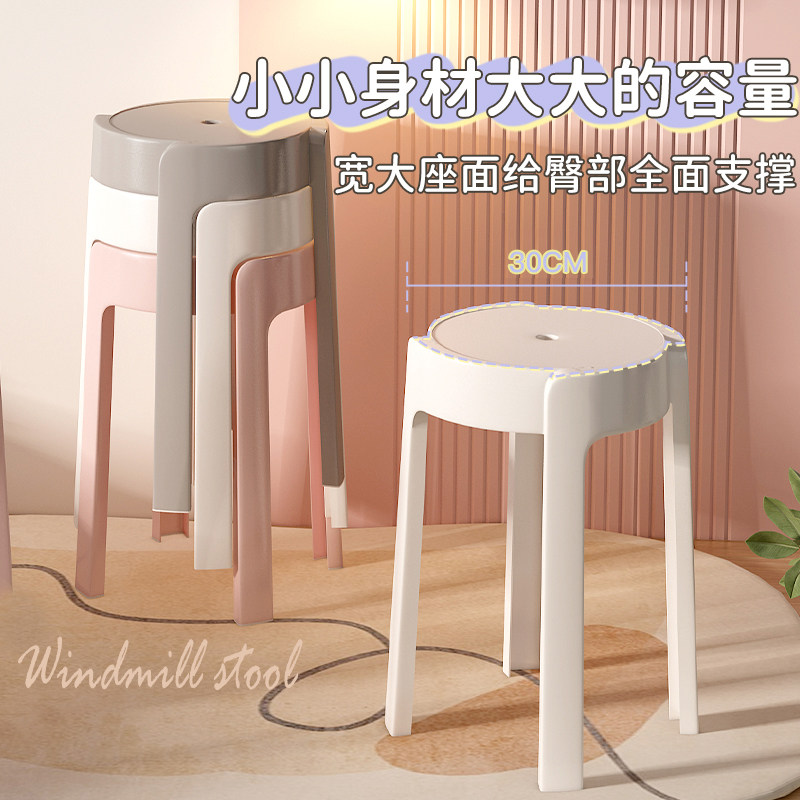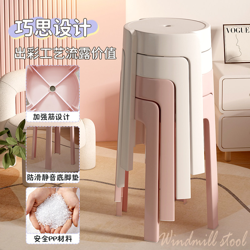 塑料凳子加厚家用可叠放风车高板凳圆胶凳简约餐厅备用餐桌高椅子