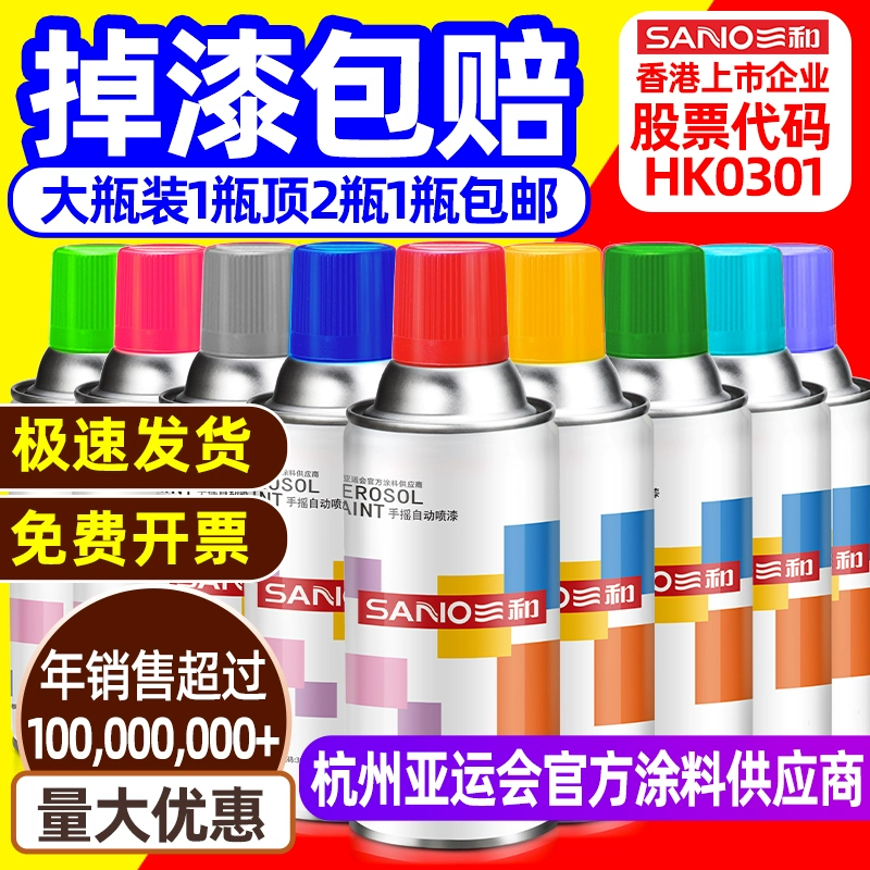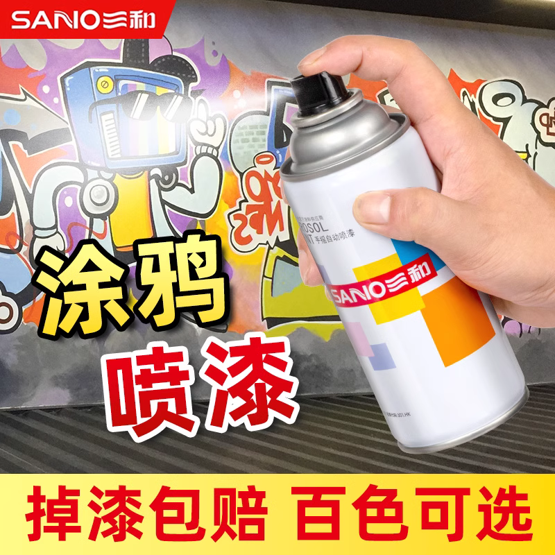 三和自喷漆轮毂汽车防锈墙面修复手摇喷漆油漆黑色白色7035金属漆