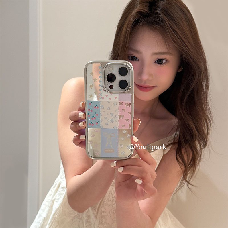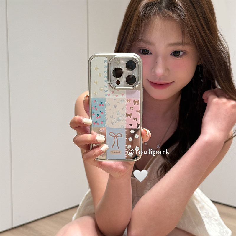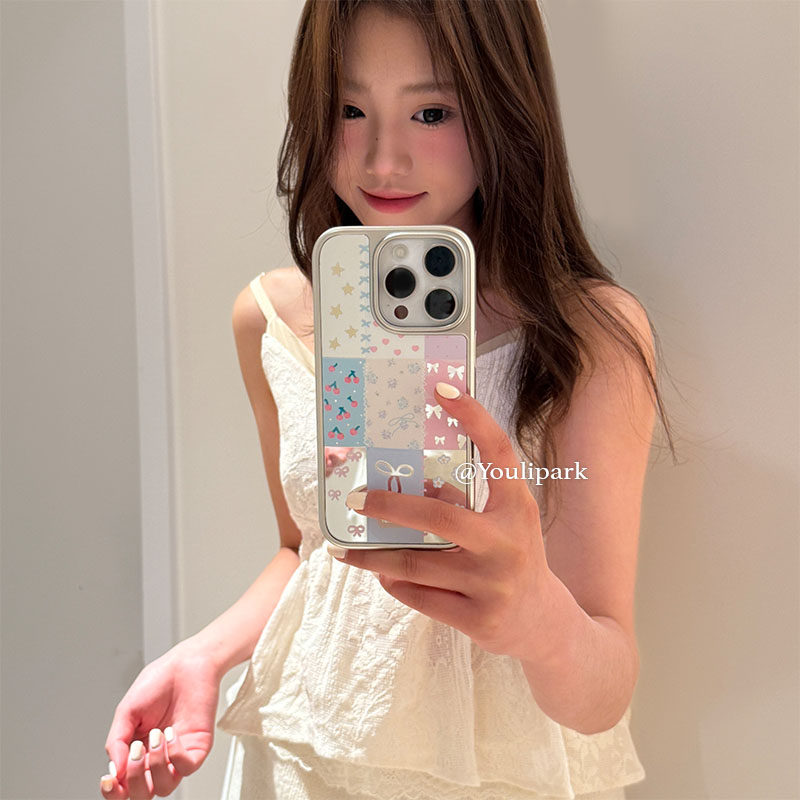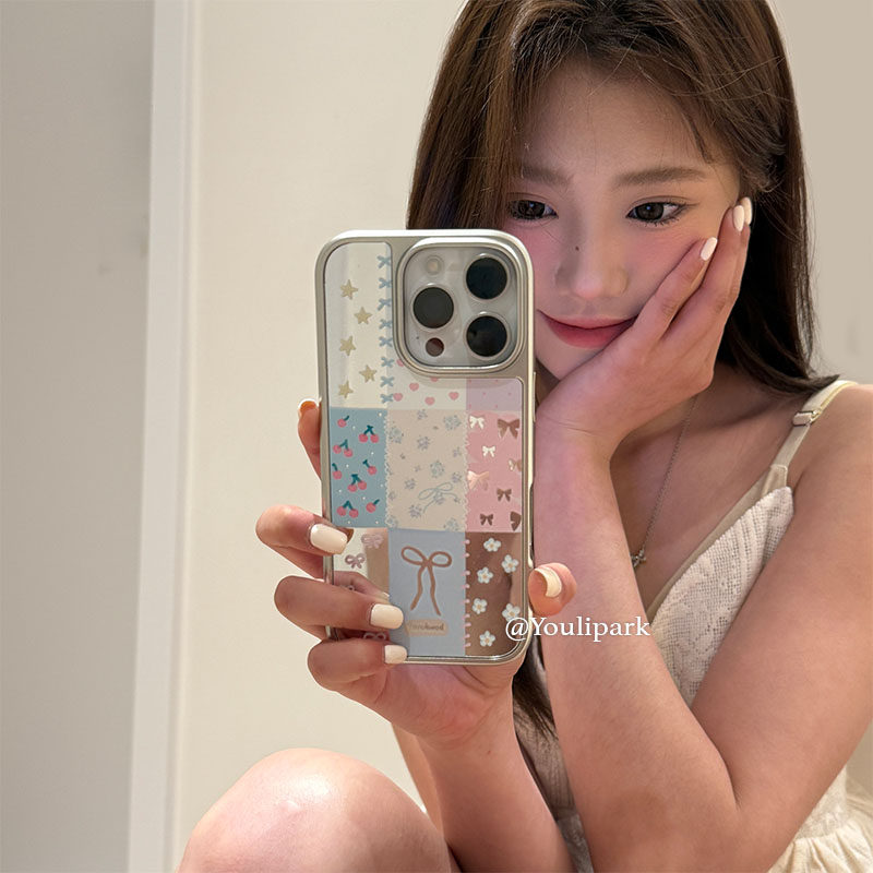 由里公园ins小众少女心镜面拼接蝴蝶结15适用16pro苹果16ProMax手机壳iPhone16全包14电镀14Promax保护套13韩