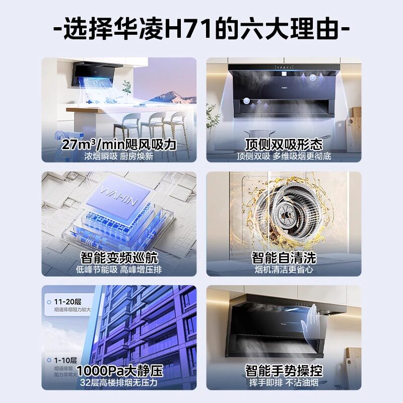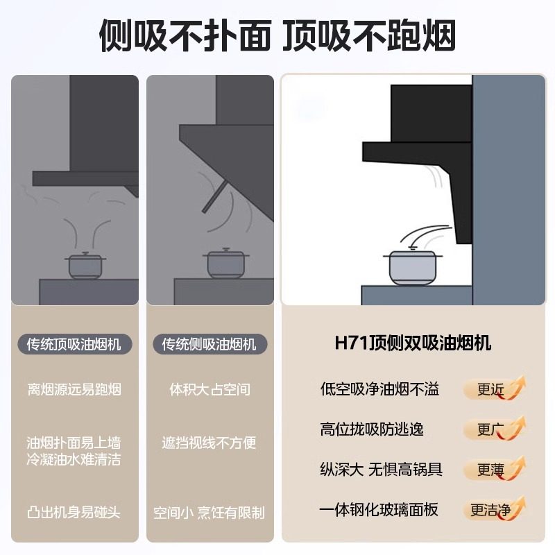 以旧换新美的华凌神机顶侧双吸家用大吸力抽油烟机H71/H61小尺寸