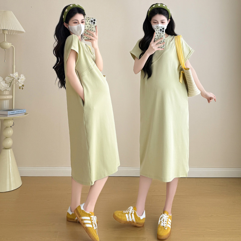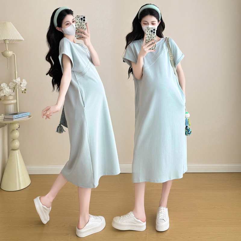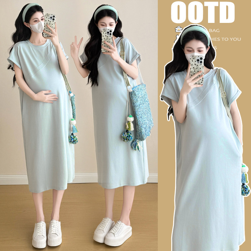 婧麒孕妇装连衣裙夏2025新款时尚洋气孕妈高级穿搭纯棉孕期裙子女
