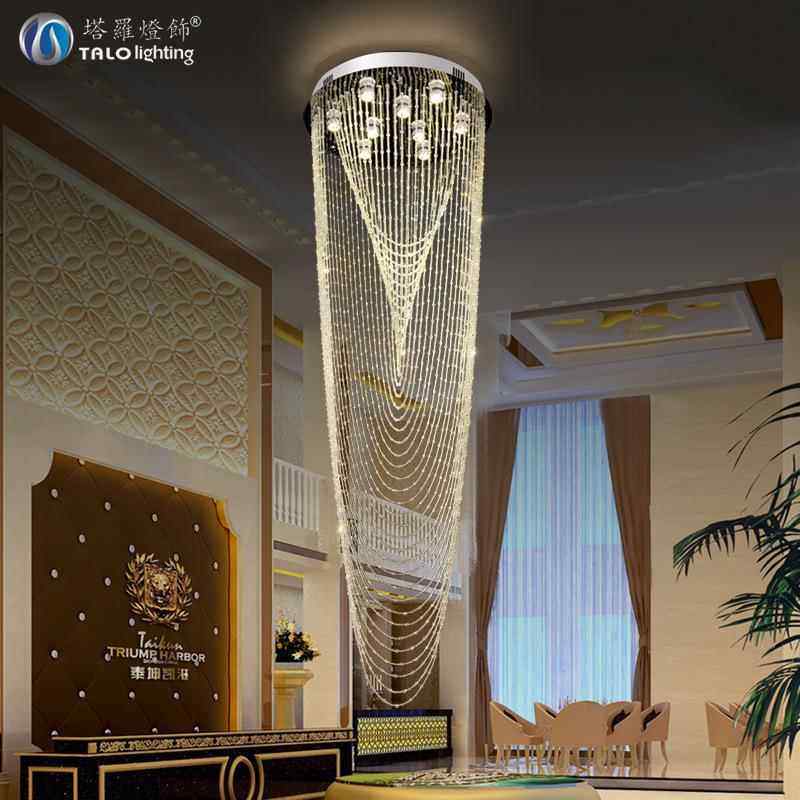 速卖通别墅复式楼梯LED水晶长吊灯客厅珠帘吊线灯现代酒店工程灯
