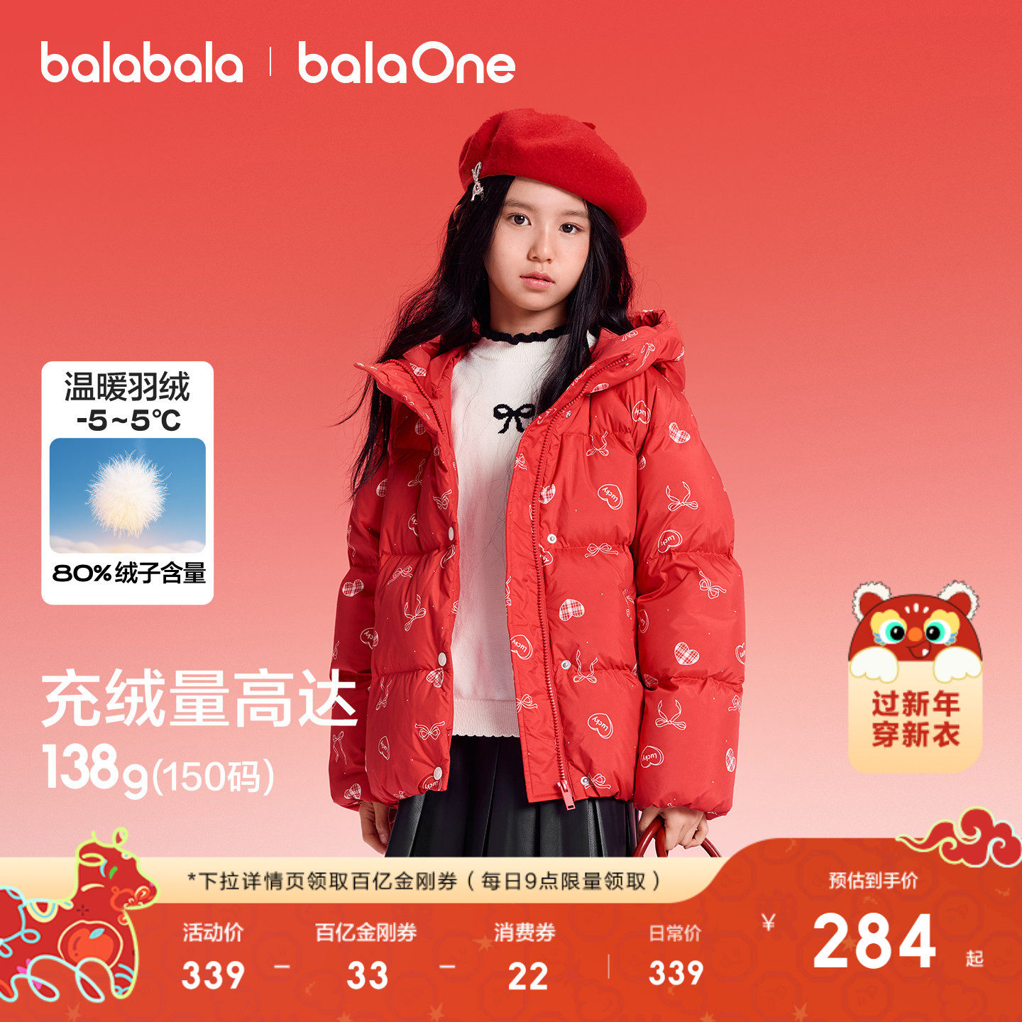 巴拉巴拉童装儿童羽绒服女童甜美2026新款冬装外套宝宝红色拜年服
