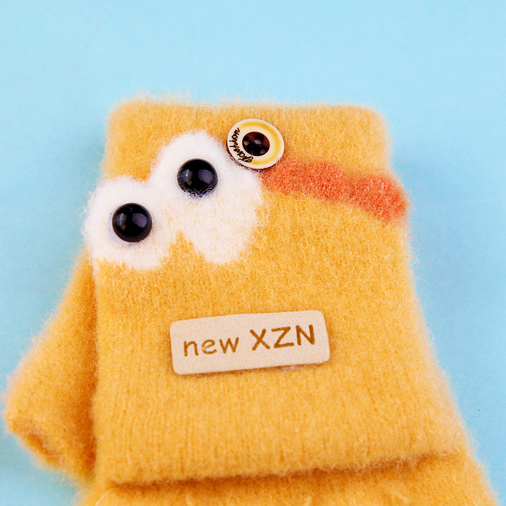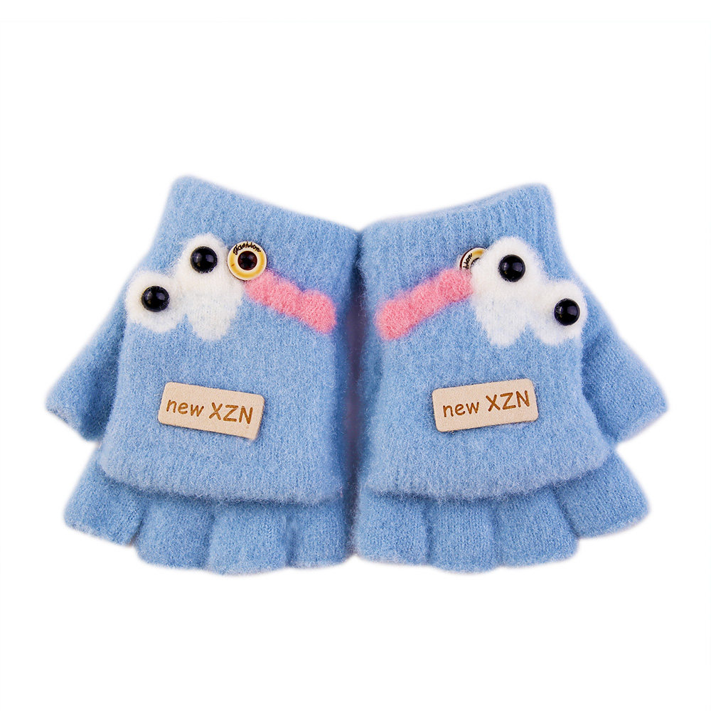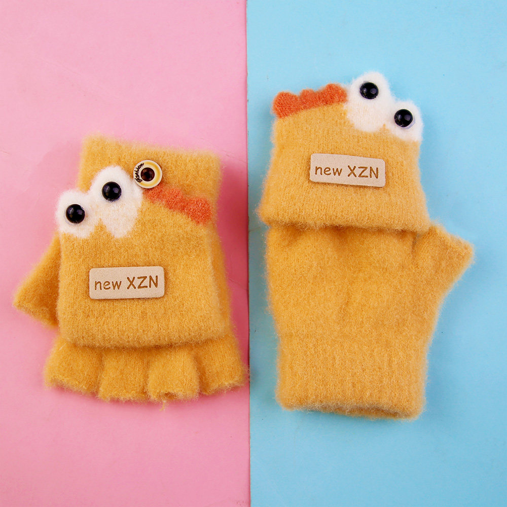 4-7岁中童儿童半指翻盖毛线宝宝冬季包指手套保暖手套女加厚男女