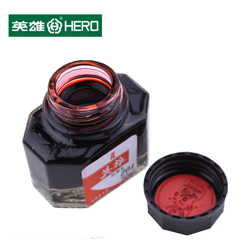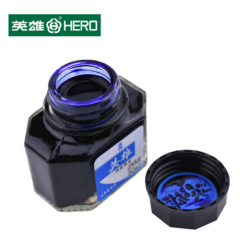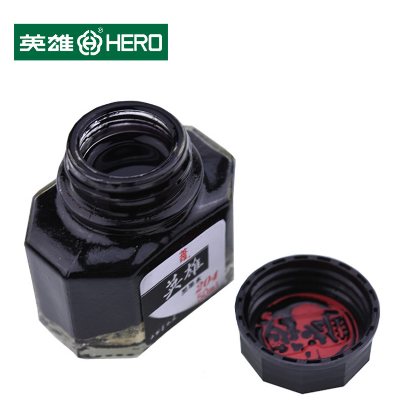 HERO英雄墨水204黑色蓝黑50ML大瓶装不堵塞笔尖钢笔水