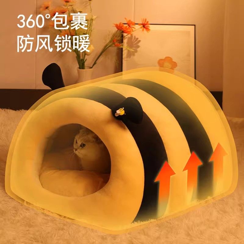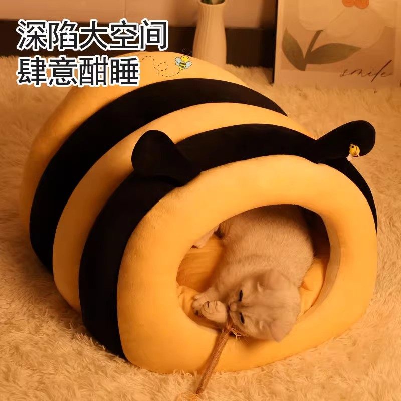 猫窝冬加季厚封闭式保暖可拆洗冬季室内狗窝加厚蜜蜂沙发小窝双层