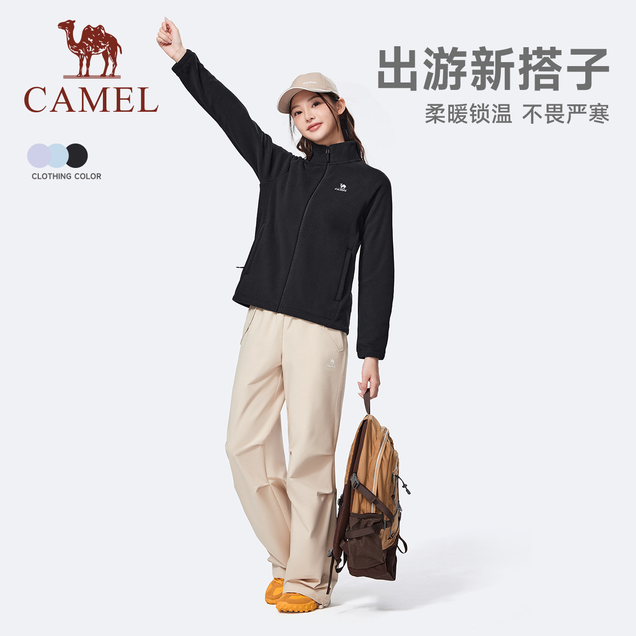骆驼女装立领夹克2025秋冬新款百搭保暖摇粒绒抗静电开衫外套