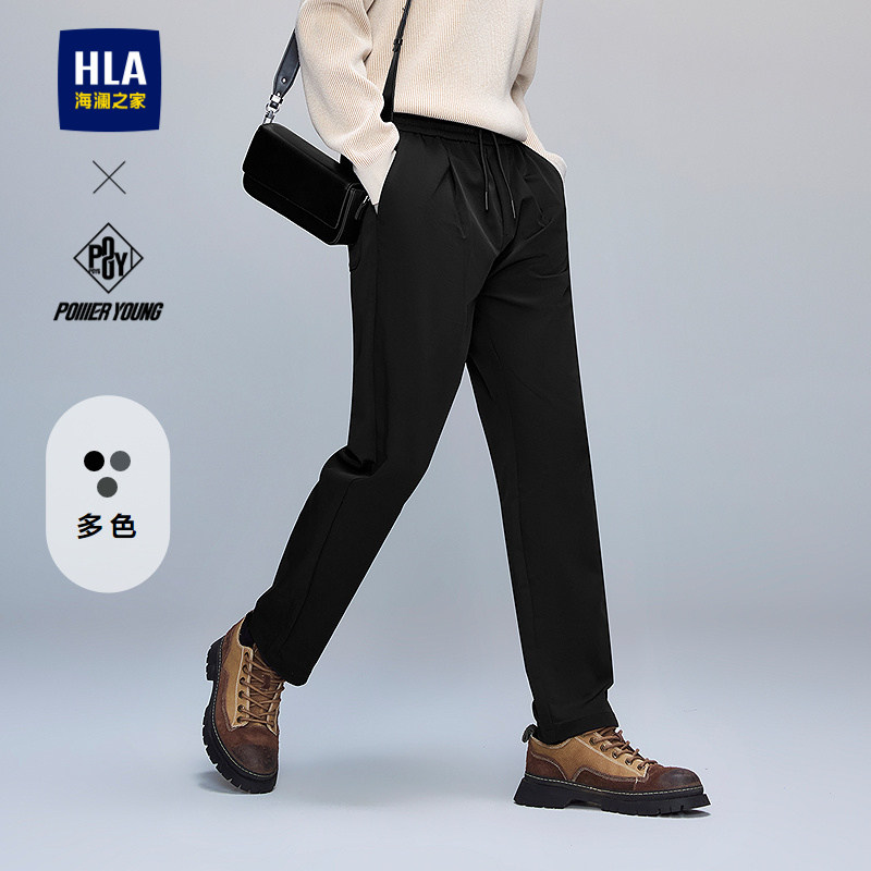 HLA/海澜之家抽绳微弹休闲裤加绒加厚可选25秋冬季新款长裤子男士