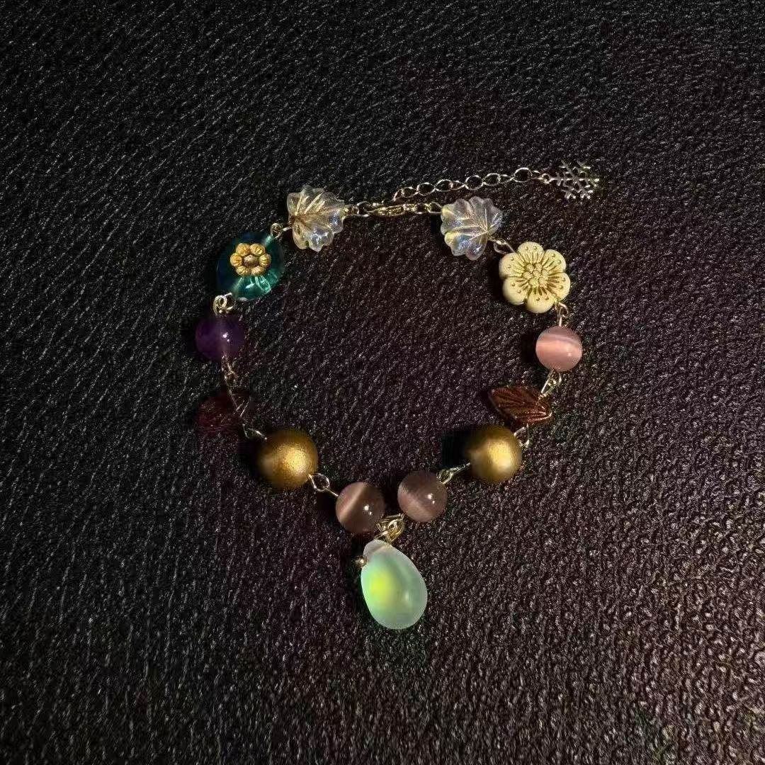 山茶花猫眼石纯银手链女2025年新款水晶手串轻奢小众精致生日礼物
