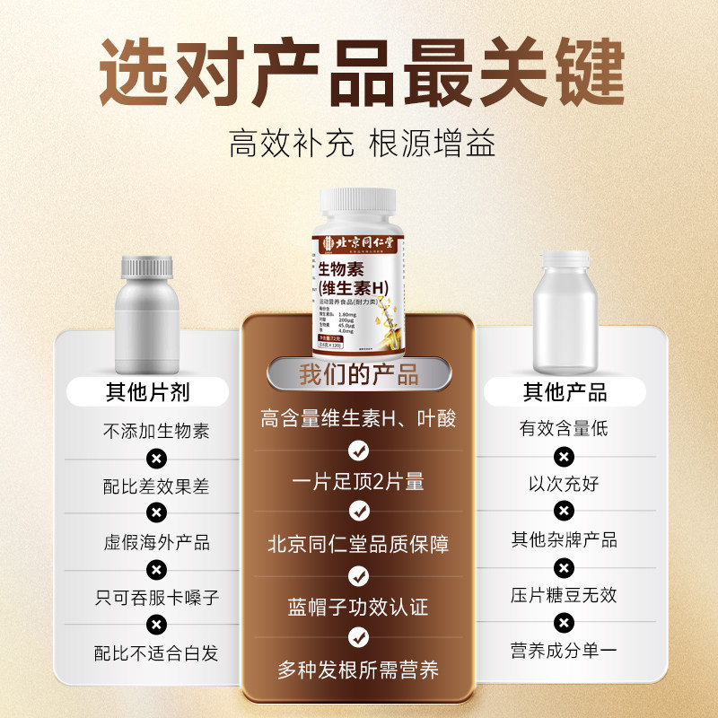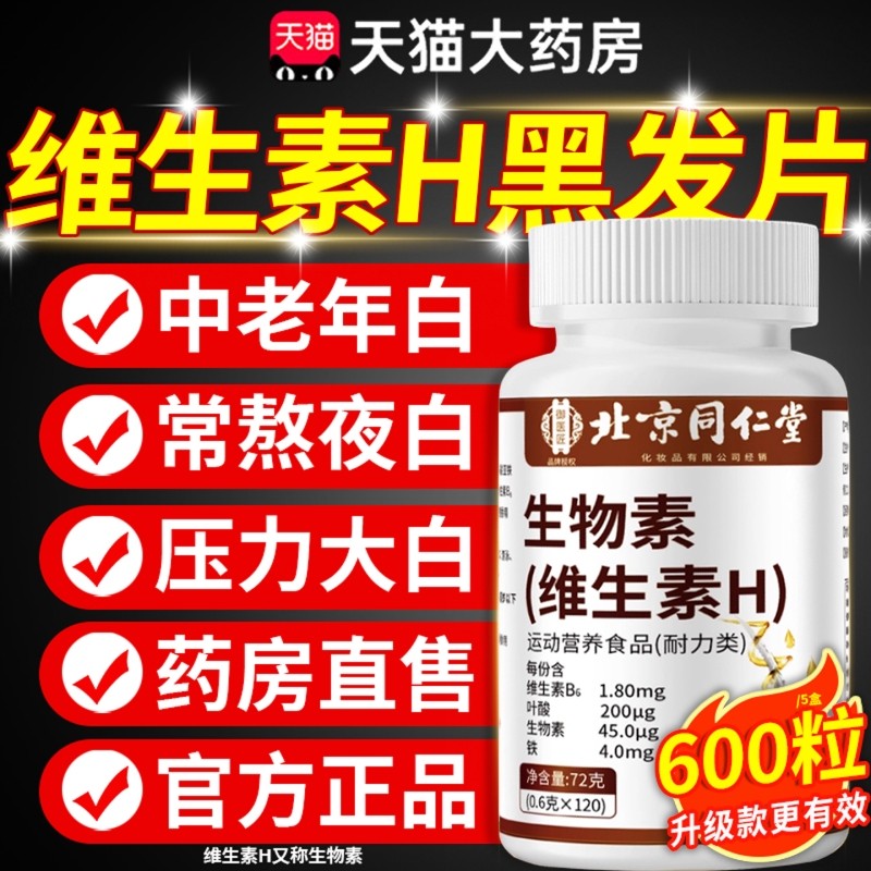 同仁堂维生素h官方旗舰店正品黑发片生物素防脱发治白头发根转黑