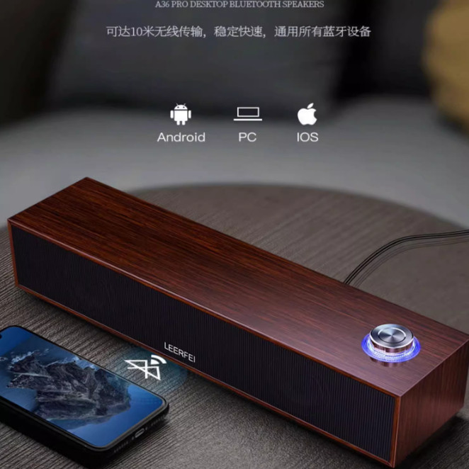 E350MB有线蓝牙音响多媒体电脑桌面长条木质复古音箱重低音两用