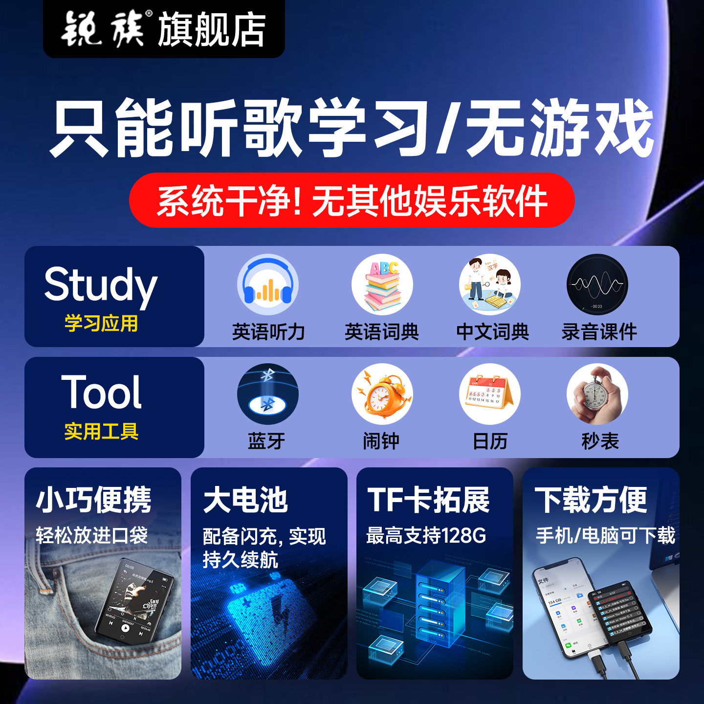 锐族MP3学生专用听歌音乐英语听力蓝牙MP4无游戏无小说随身听神器