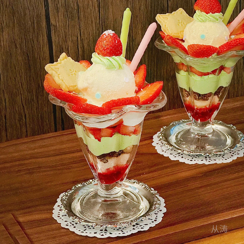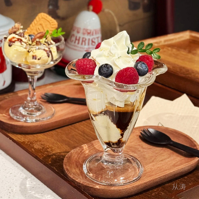 玻璃冰淇淋杯水果汁杯奶茶杯甜品杯创意冰激凌碗奶昔冷饮雪糕杯子