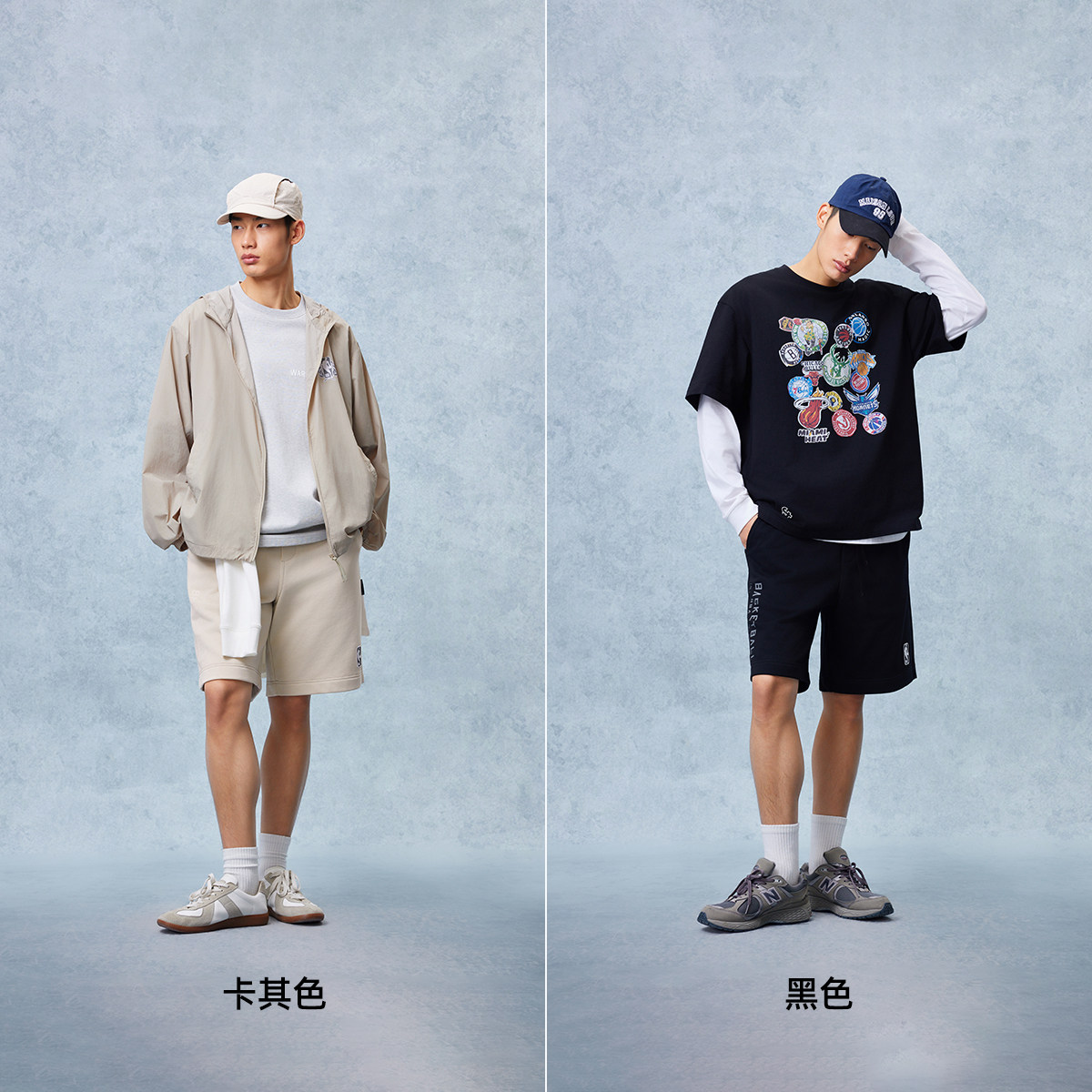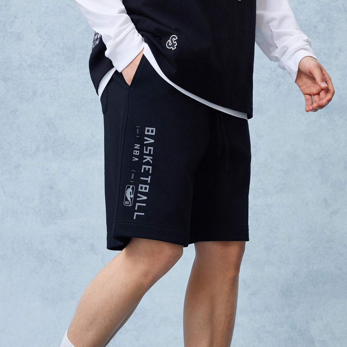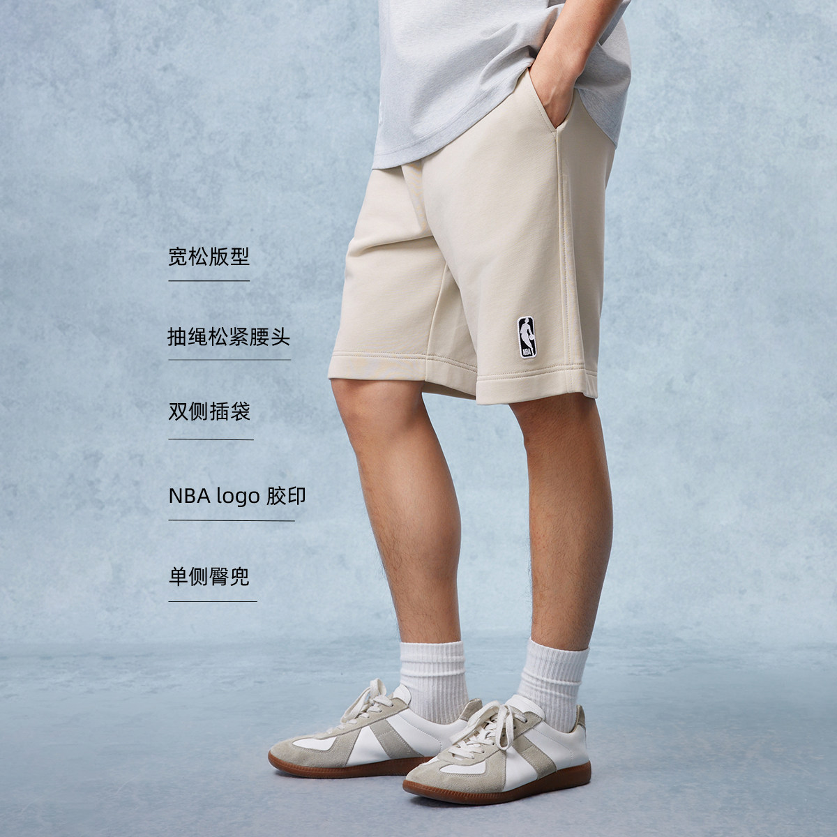 宽松版型;抽绳松紧腰头;NBA logo 胶印
