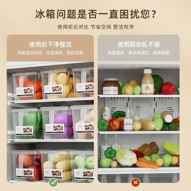 冰箱收纳盒保鲜盒家用手柄冰箱盒厨房果蔬收纳盒分类带盖冷冻收纳