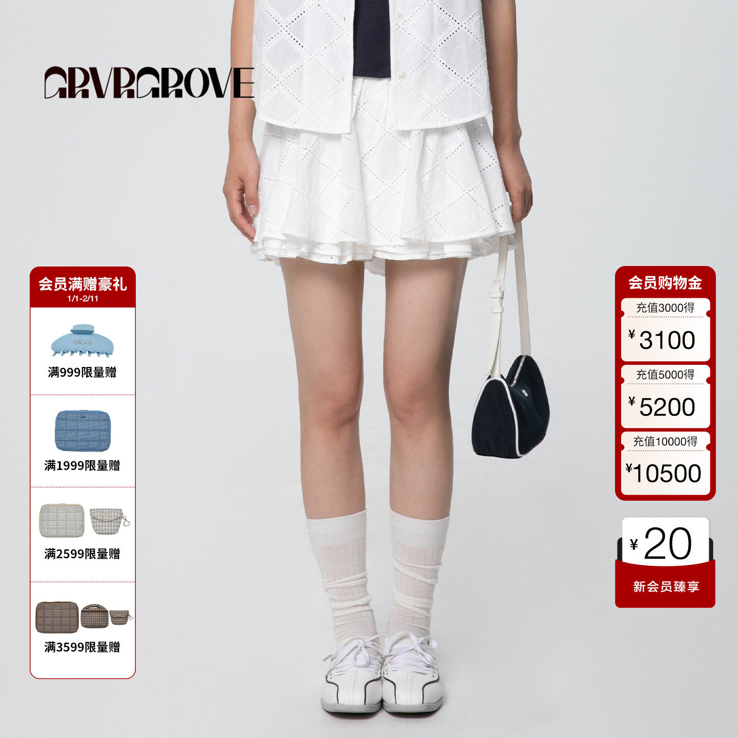 GROVE官方旗舰店2025SS春夏新款女士菱形纹梭织短裙裤GCM5PT07