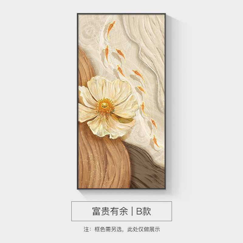 现代简约花开富贵客厅挂画轻奢走廊过道壁画九鱼图玄关装饰画玄关